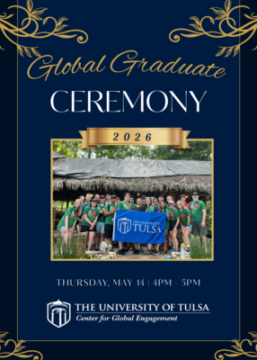 UTulsa's Center for Global Engagement is excited to celebrate our global graduates! UTulsa graduating international students, students who spent a semester or summer abroad through CGE, and their families are invited for a special celebration and ceremony. We'll also be recognizing the faculty and staff who have supported our students' global journeys—from guiding study abroad […]
