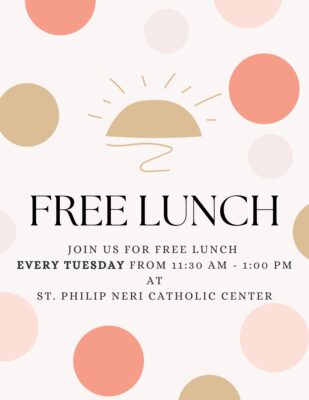 Join us for a free lunch every Tuesday at St. Philip Neri University Parish opposite the Law School!