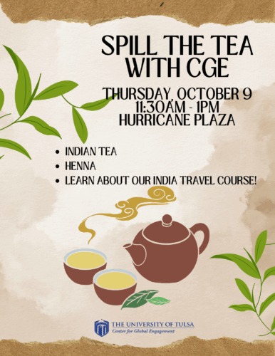 Sample international teas, coffees, and snacks. Open to UTulsa students interested in learning about the programs CGE has coming up this semester and beyond!